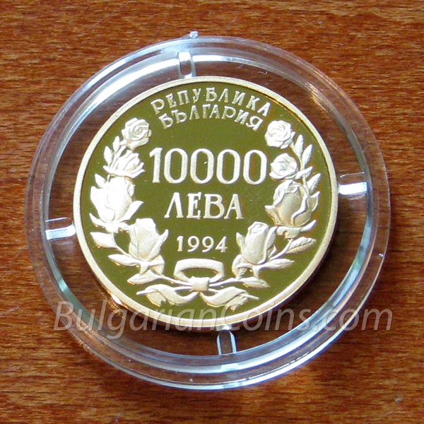 Лице:На лицевата страната на монетата е изобразена композиция от рози, годината на издаване "1994" и номиналната стойност на монетата "10,000 ЛЕВА".